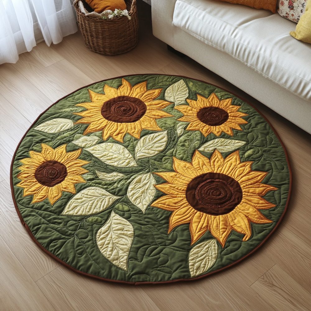 Green Sunflower Leaves Quilted Round Mat