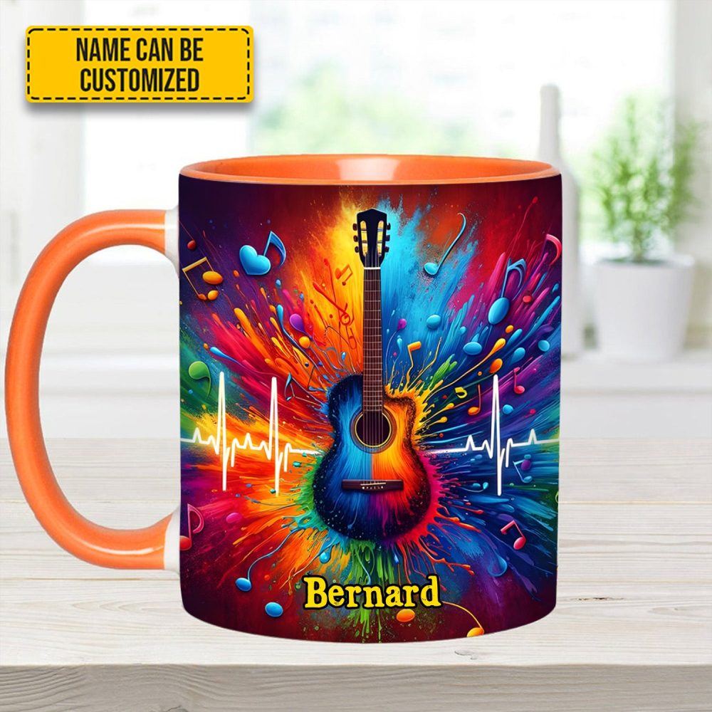 - High quality ceramic mug with two-tone rim, interior, & handle