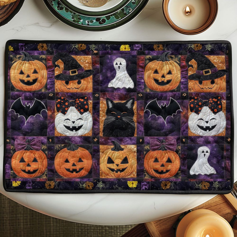 Halloween Night Quilted Placemat — Spooky Nocturne Design, Heat-Resistant & Easy-Care Mat For Atmospheric Party Tables And Autumn Decor