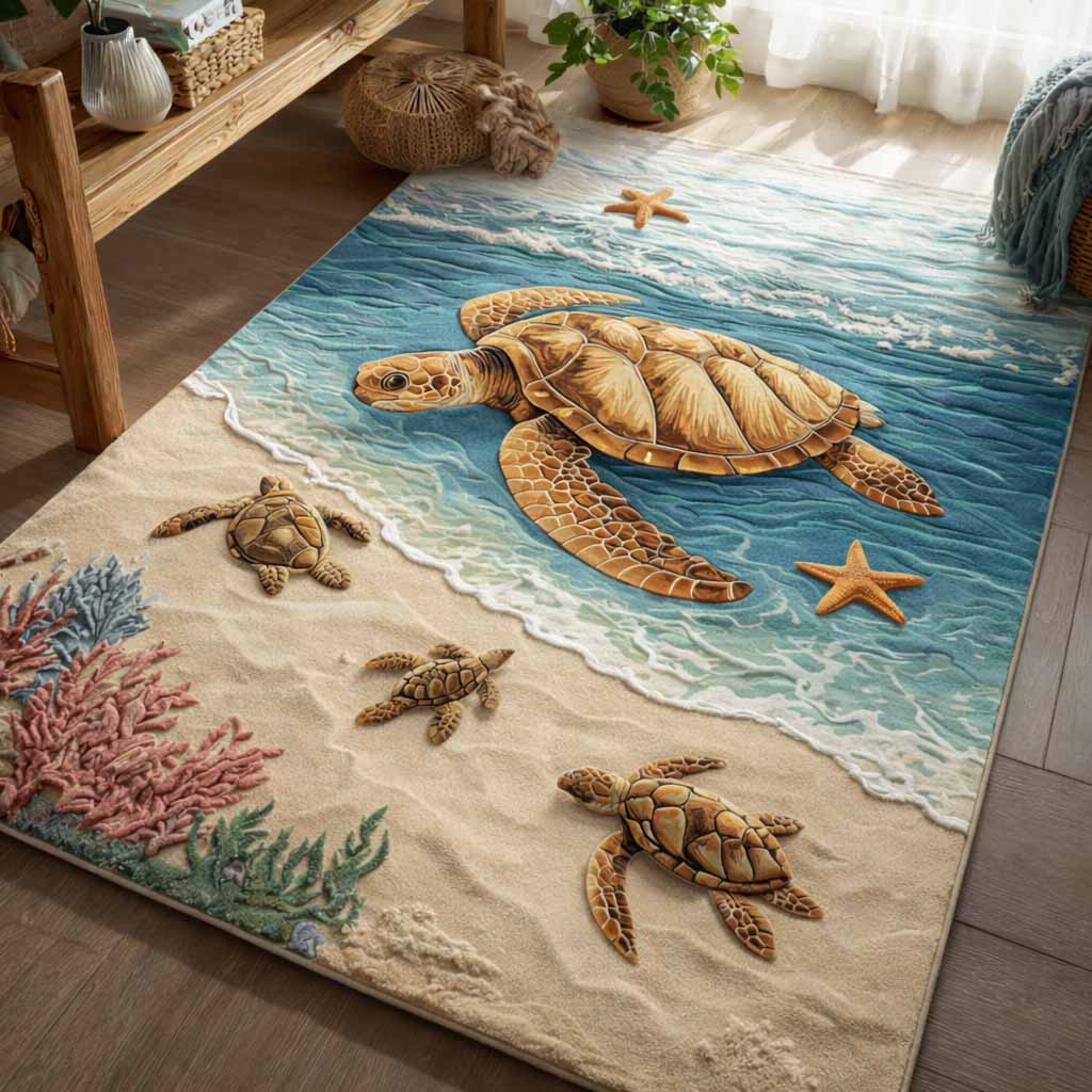Hand-Tufted Sea Turtle Rug — Coastal Area Accent With Lively Ocean Palette For Living Room, Patio & Kids’ Spaces, Durable Low Pile