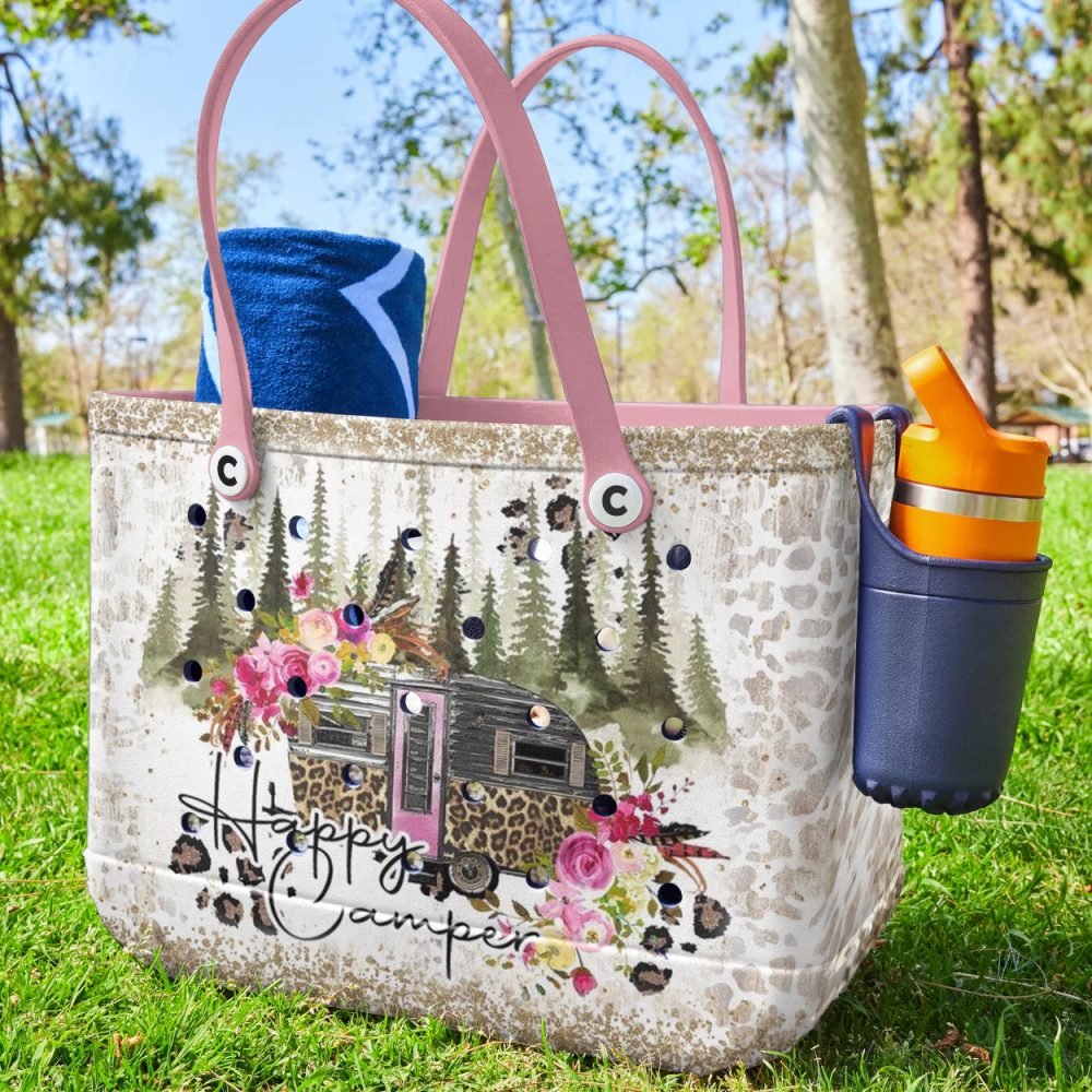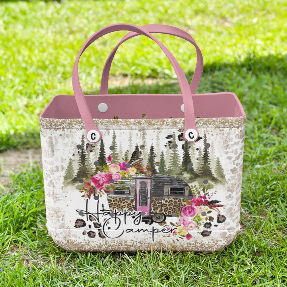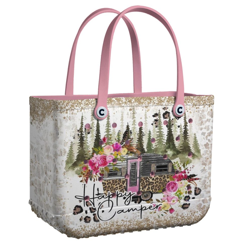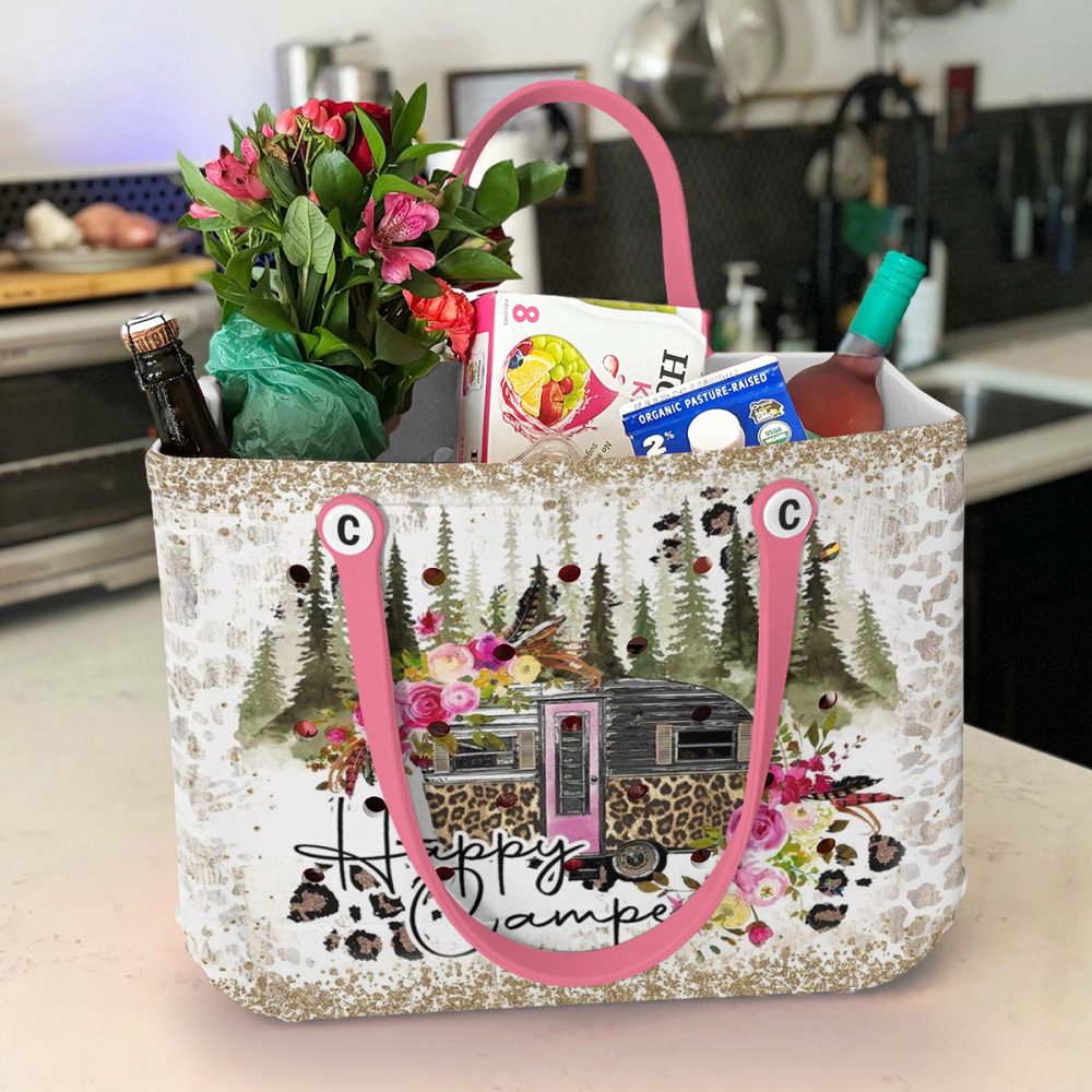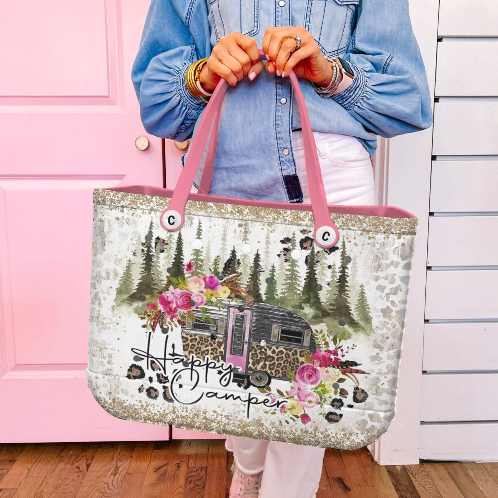 Be the first to review “Happy Camper Tote Bag – Stylish Leopard Print With Floral & Forest Design – Perfect For Travel And Outdoors”