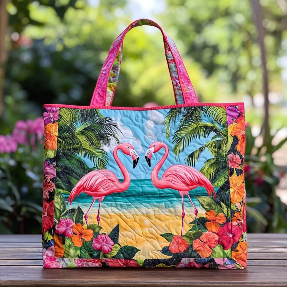 Happy Flamingo Quilted Tote Bag