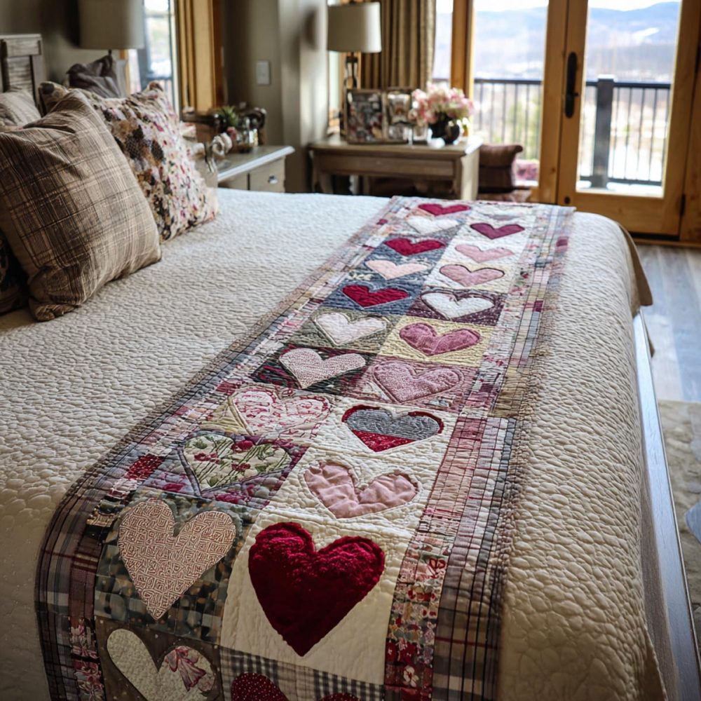 Heart Harmony Quilted Bed Scarf — Subtle Heart Floral Bed Runner For Layered Bedroom Decor, Reversible & Machine Safe