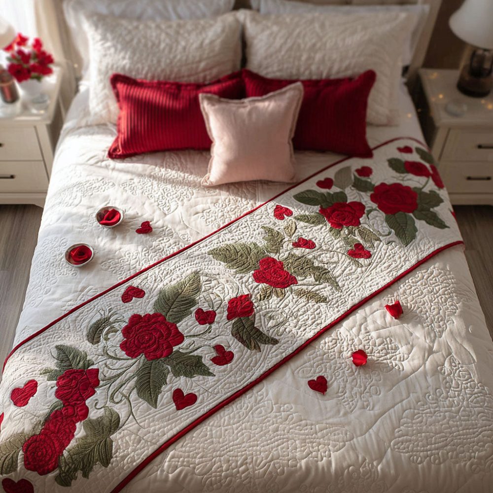 Heart Petals Quilted Bed Runner — Soft Petal Heart Bed Scarf For Delicate Bedroom Styling, Quilted Accent To Enhance Comforter Looks
