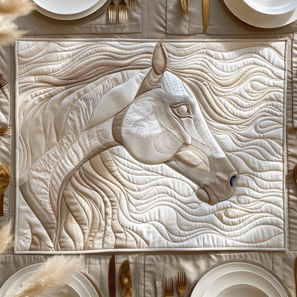 heavenly horse placemat,equestrian placemat,quilted dinner mat,premium cotton placemat,machine-washable placemat,durable table mats,equestrian decor