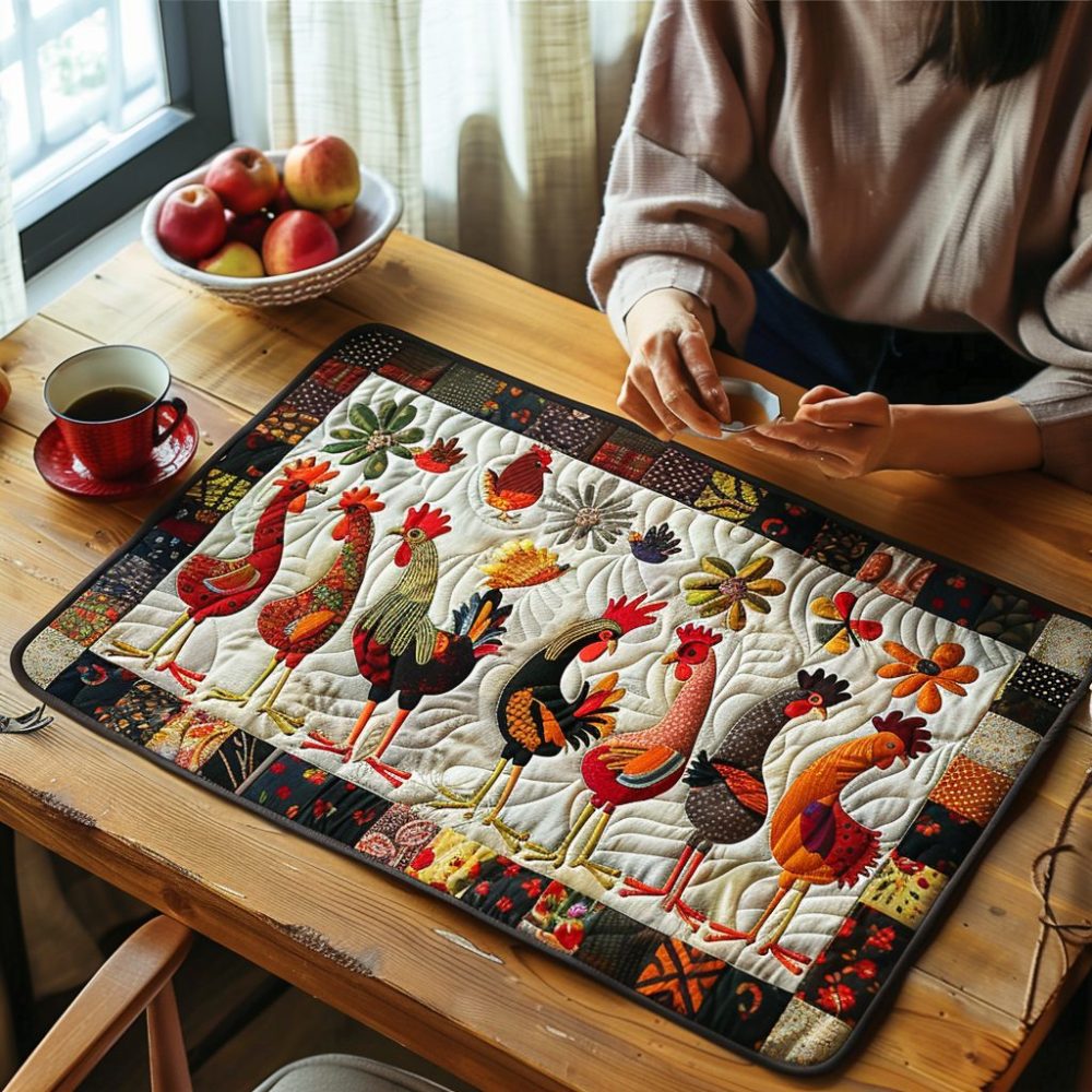 Invite a little farmhouse fun to your table with the Hen House Gossip quilted placemat. Playful hen graphics and warm tones are stitched into a quilted cotton design that offers heat protection and spill resistance. Soft yet durable, it’s machine washable for simple upkeep and keeps its shape use after use. Ideal for breakfast nooks, casual dinners, garden brunches, or gifting to fans of country kitchen charm.