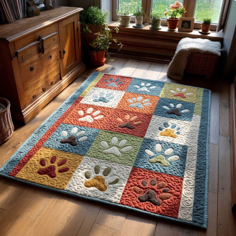 Heritage Heirloom Paw Print Area Rug — Classic Pet-Friendly Indoor Rug, Soft Durable Low-Pile Mat For Pet Areas & Cozy Rooms