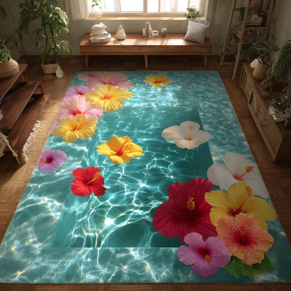 Hibiscus Glow Tropical Rug — Radiant Floral Accent Rug With Durable Construction, Low-Pile Comfort For High-Traffic Rooms