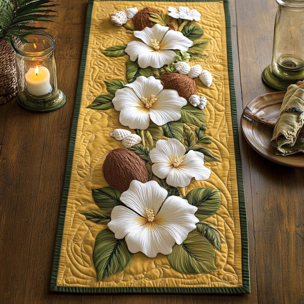 Hibiscus Harmony Quilted Table Runner