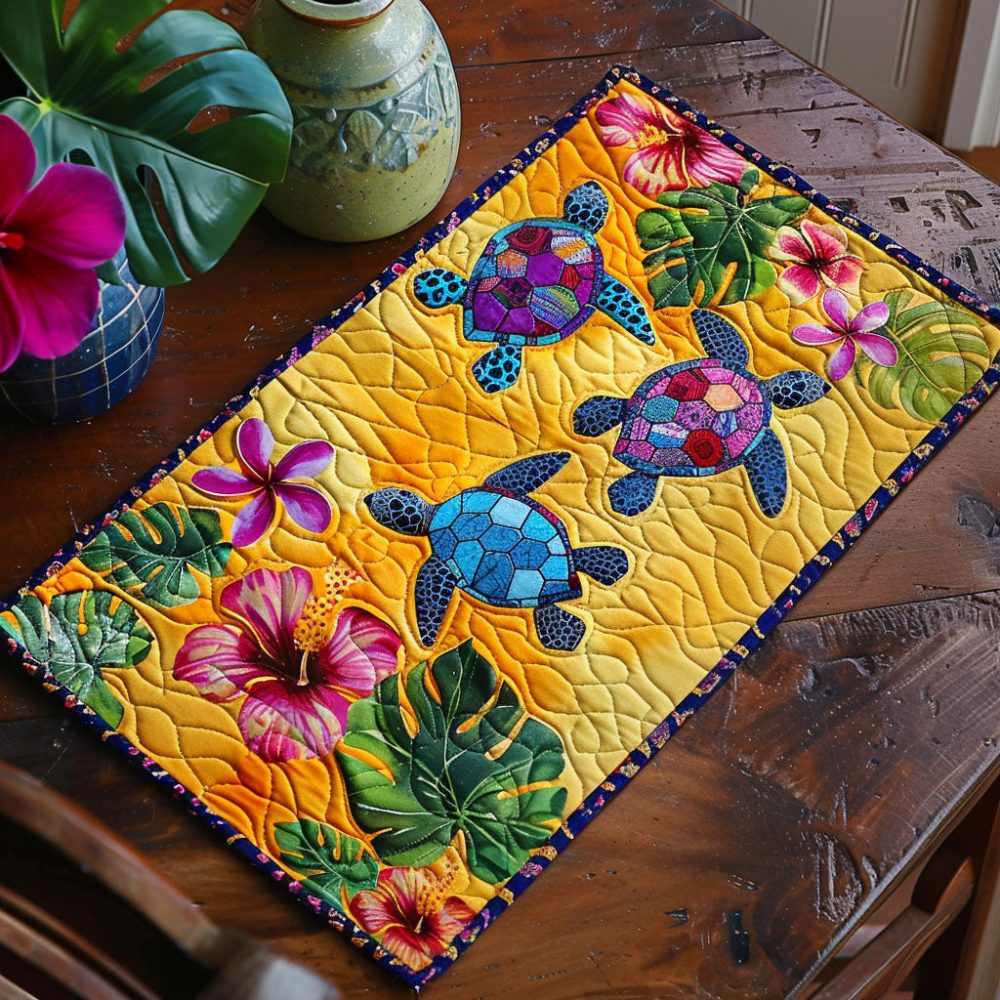 quilted placemat, hibiscus turtle placemat, tropical table mat, coastal decor, sea life placemat, machine washable, beach table accessory
