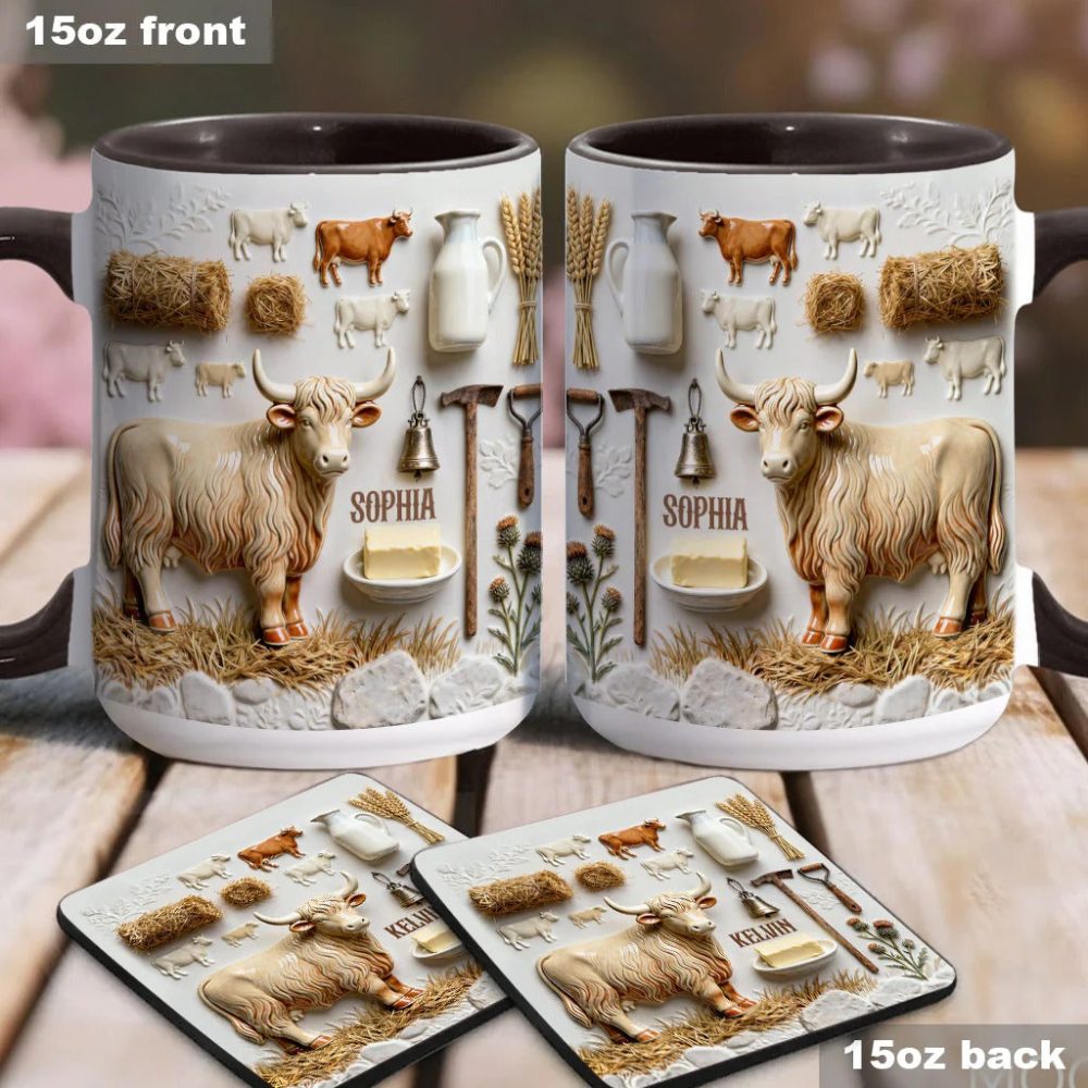 - High quality ceramic mug with two-tone rim, interior, & handle