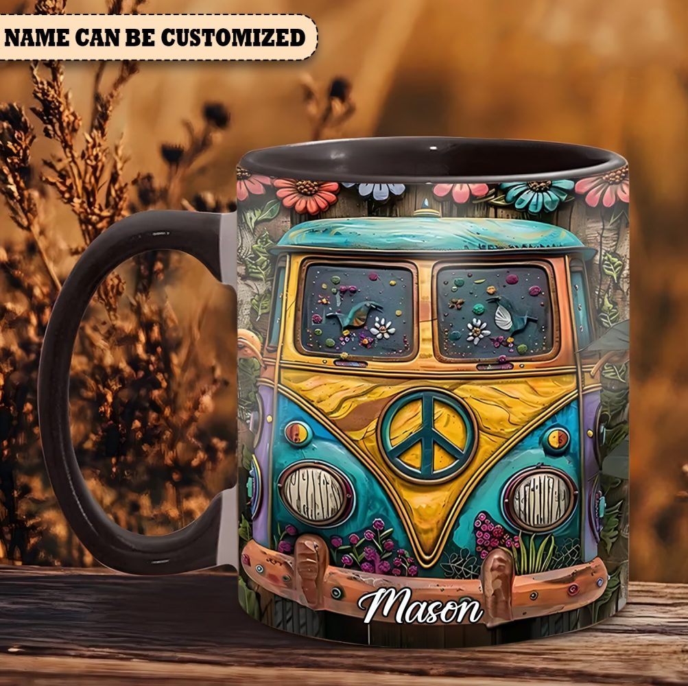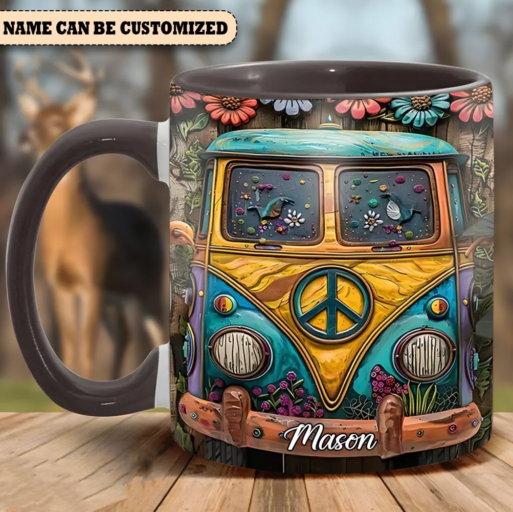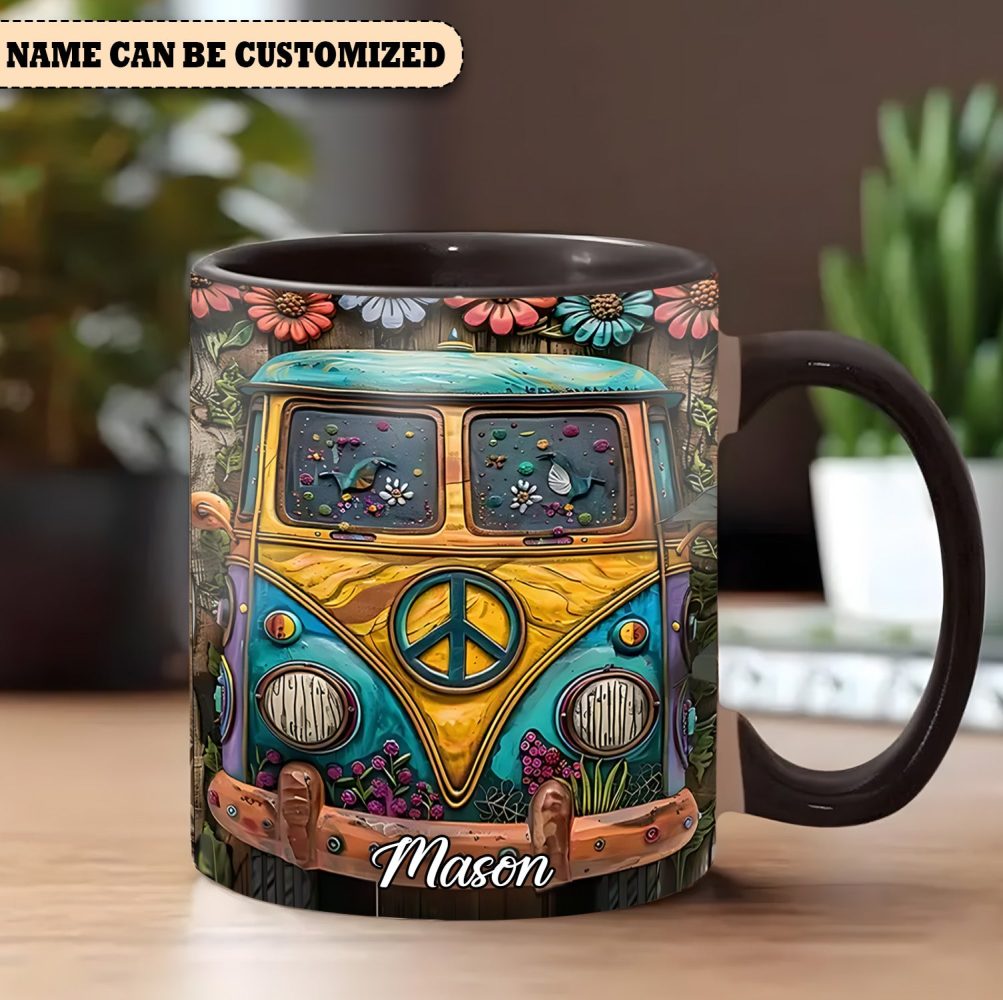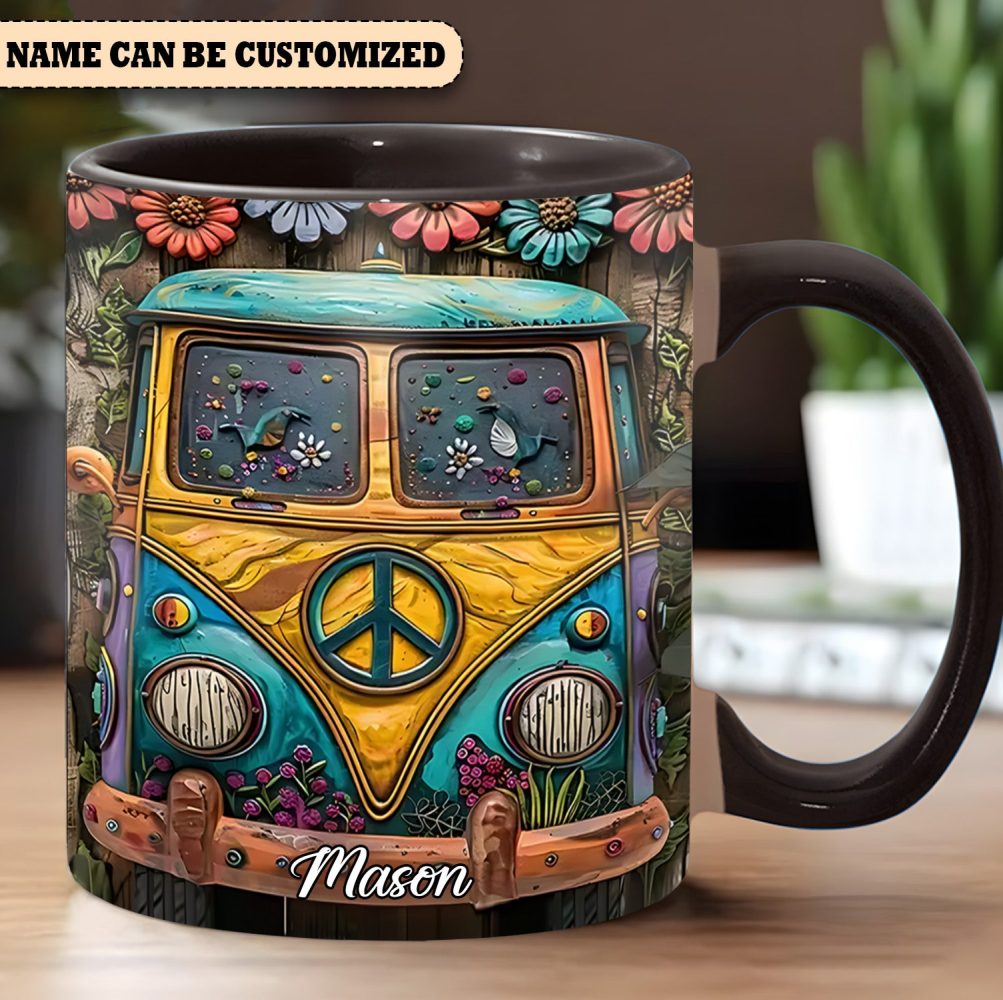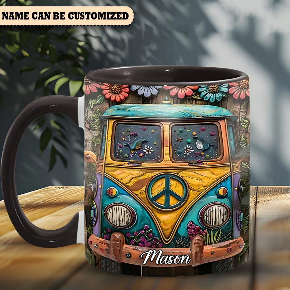 Hippie Bus Flowers – Personalized Hippie Accent Mug
