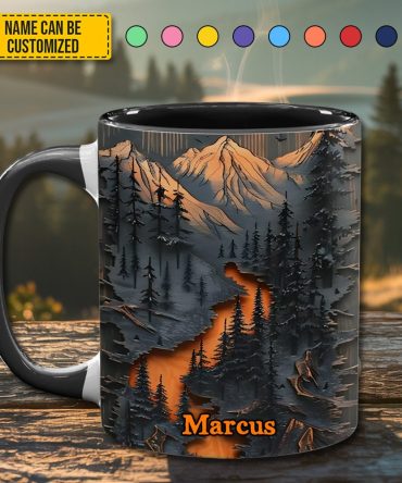 - High quality ceramic mug with two-tone rim, interior, & handle