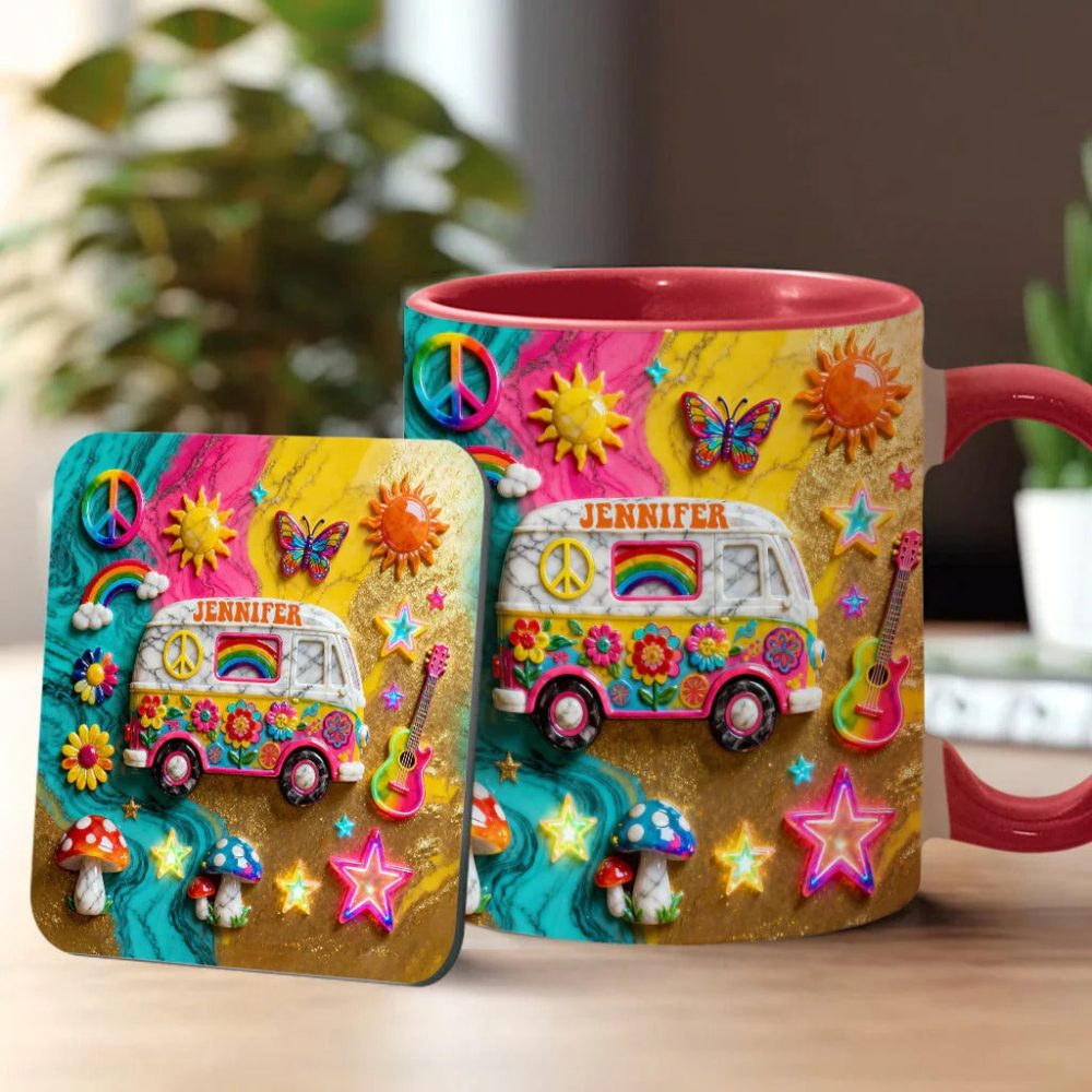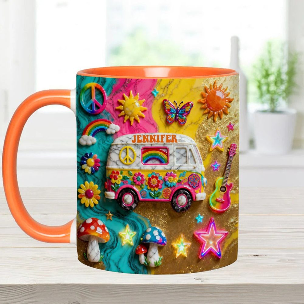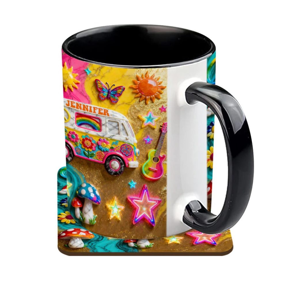 - High quality ceramic mug with two-tone rim, interior, & handle