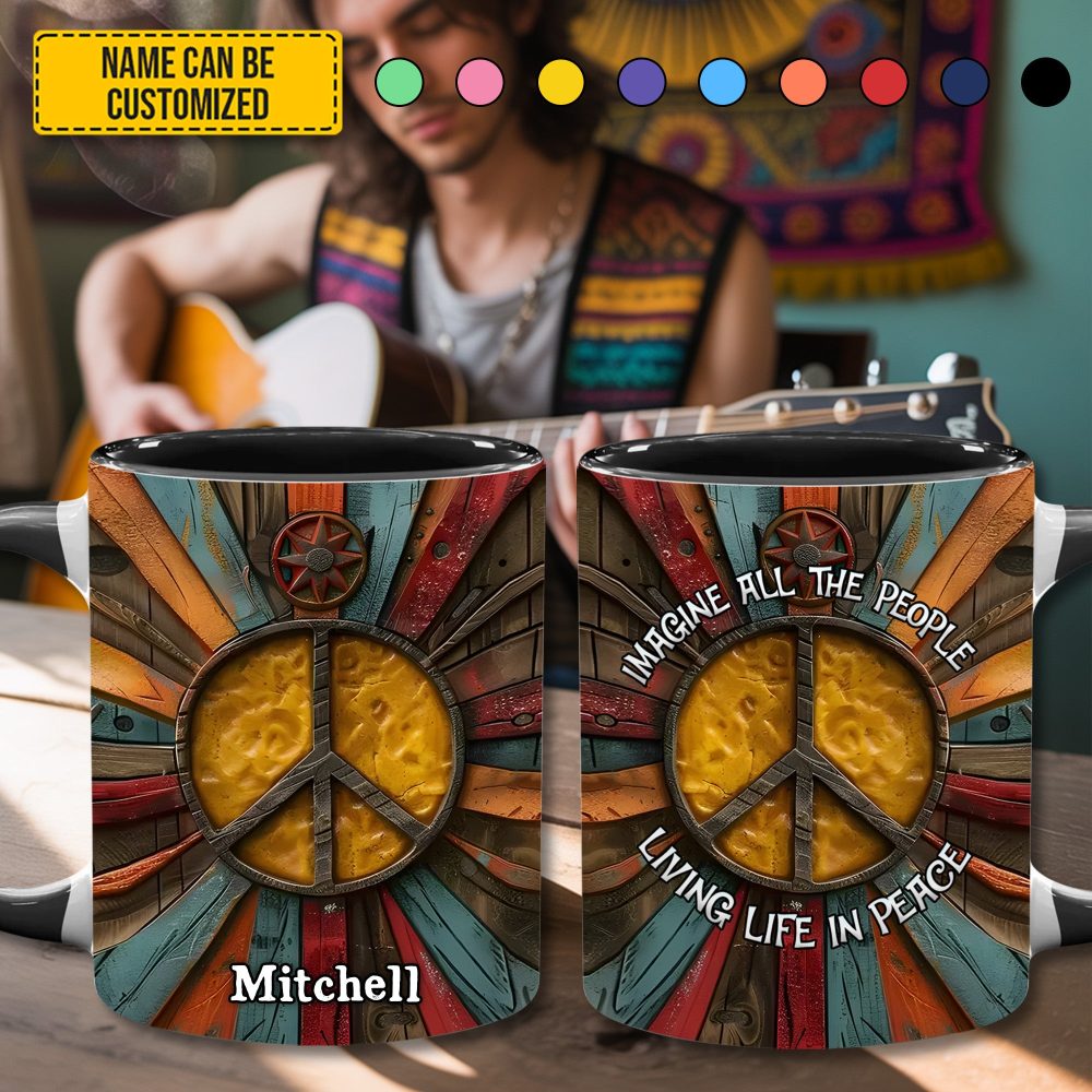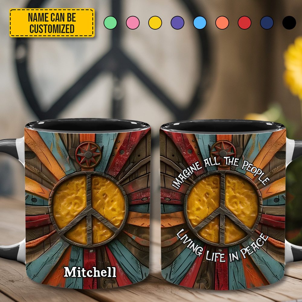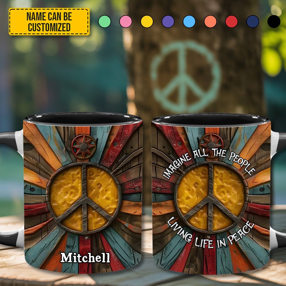 - High quality ceramic mug with two-tone rim, interior, & handle