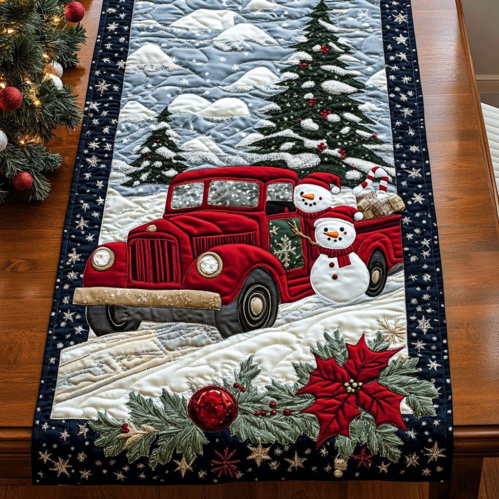 Holiday Paws And Wheels Quilted Table Runner