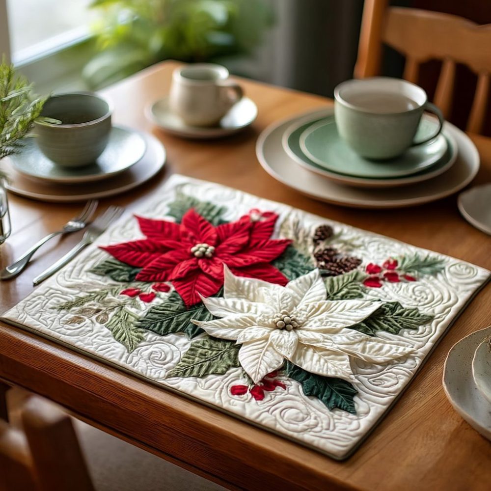 Holiday Radiance Quilted Placemat — Festive Seasonal Table Mat, Sparkling Quilted Dining Protector, Machine-Washable For Celebrations & Holiday Meals