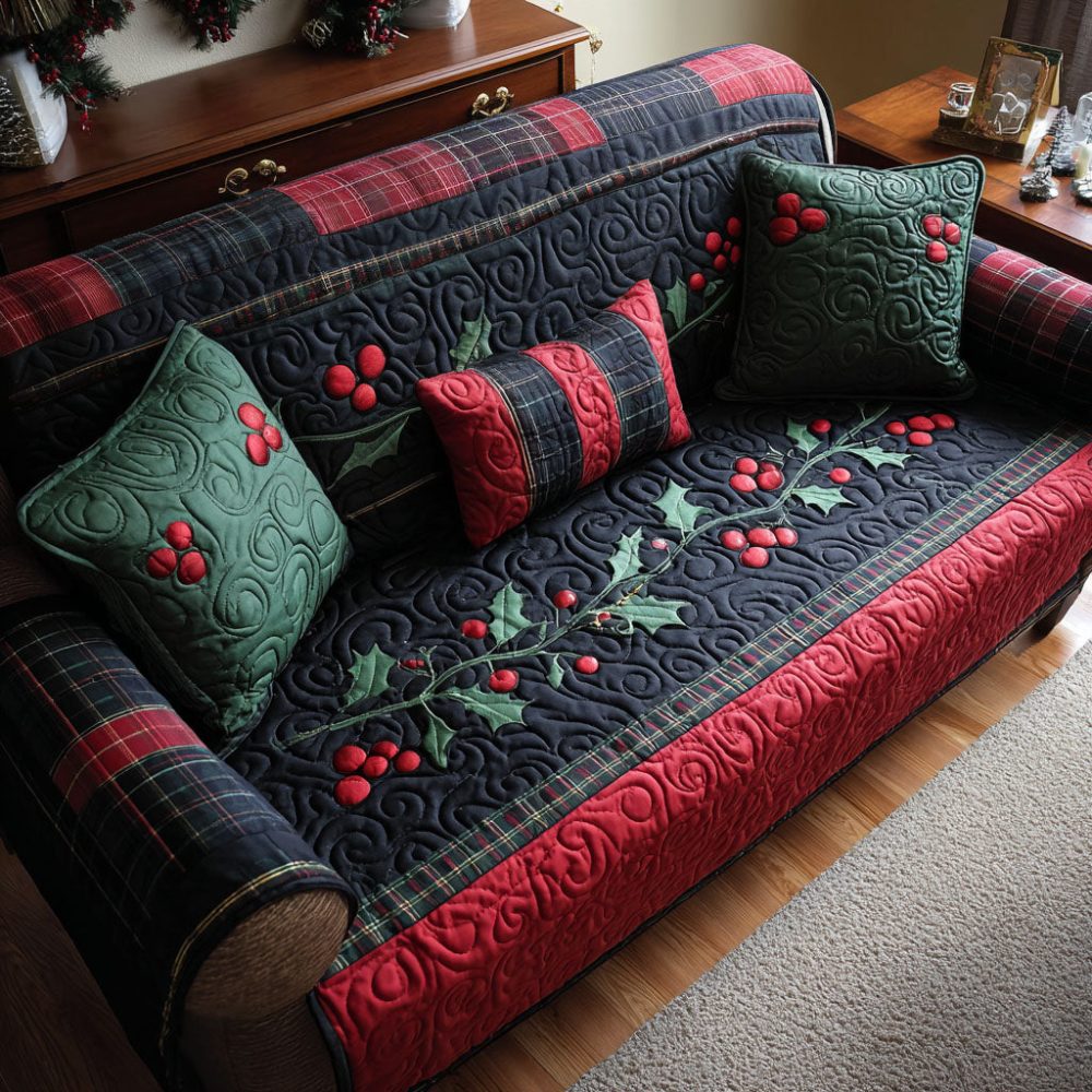 Holly Hearth Quilted Sofa Cover