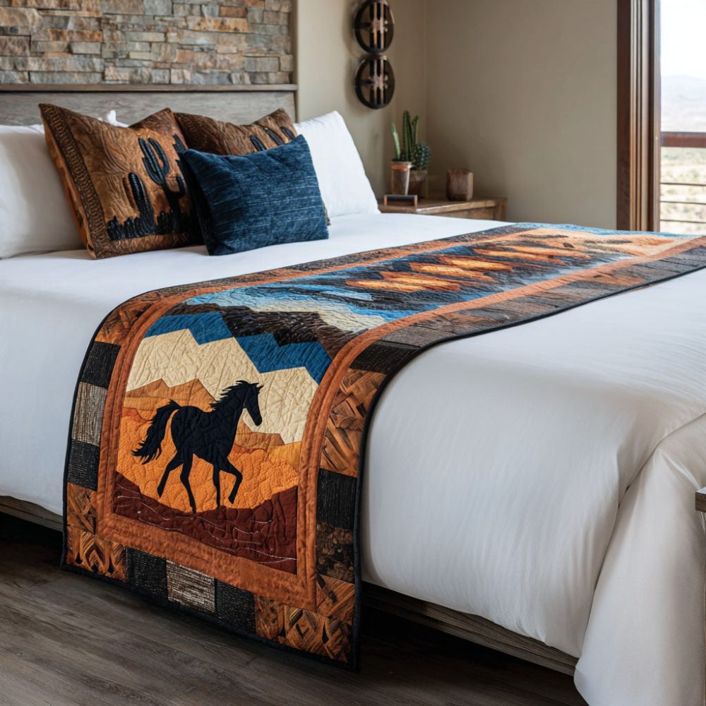 Homestead Sunset Quilted Bed Runner — Warm Country Sunset Palette, Cozy Quilted Scarf For Inviting Farmhouse Bedrooms