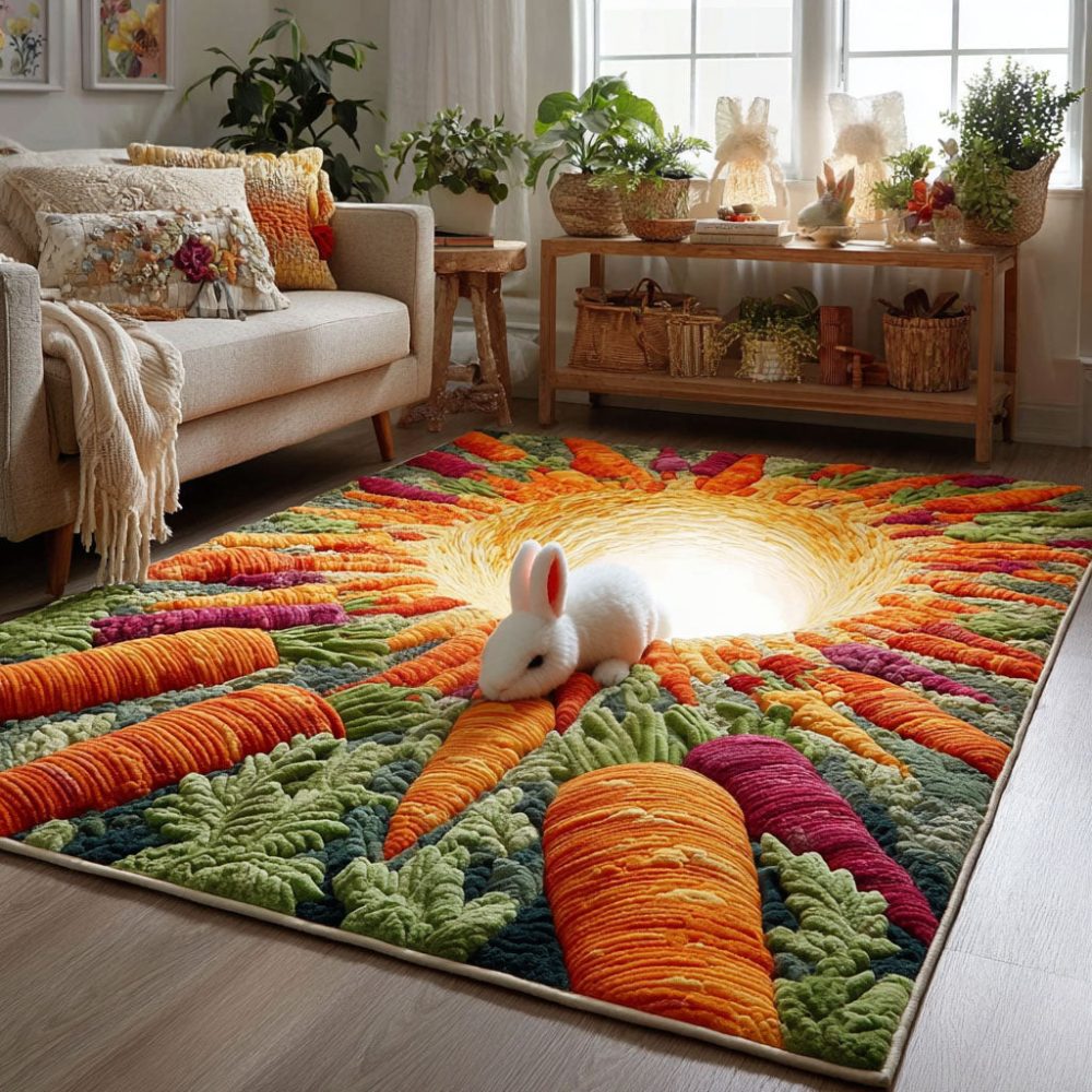 Hop-Into-Cozy Bunny & Carrot Kids Area Rug — Soft Low-Pile Non-Slip Nursery Accent, Stain-Resistant Polyester Playroom Rug