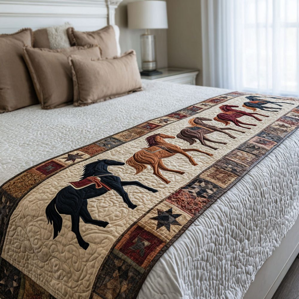 Horse Shine Quilted Bed Scarf — Equestrian-Themed Bed Runner Accent, Reversible Cotton-Blend Throw For Ranch & Country Bedrooms, Durable & Machine Washable