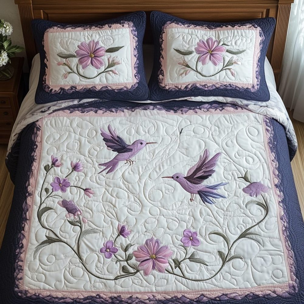 Humming Harmony 3-Piece Quilted Bedding Set