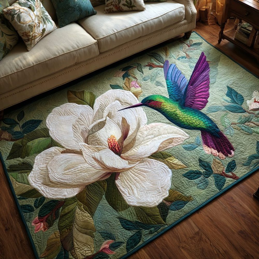 hummingbird garden rug,indoor floral rug,kitchen area rug,entryway bird rug,durable printed rug,low-profile pile,nonslip backing rug