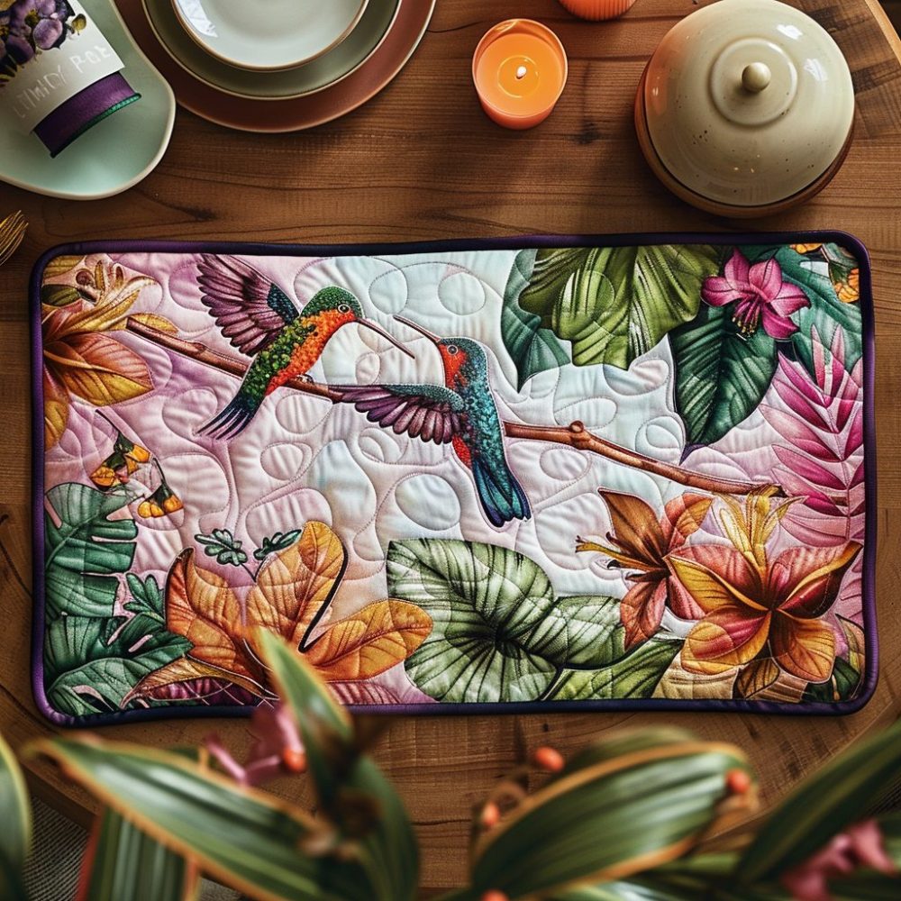 hummingbird placemat,quilted bird placemat,colorful table mat,nature table protector,quilted cotton placemat,floral dining decor,machine washable