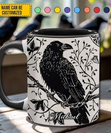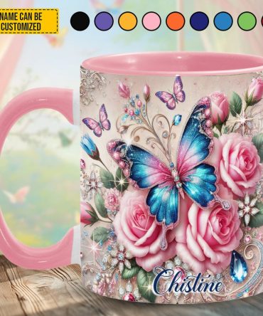 - High quality ceramic mug with two-tone rim, interior, & handle