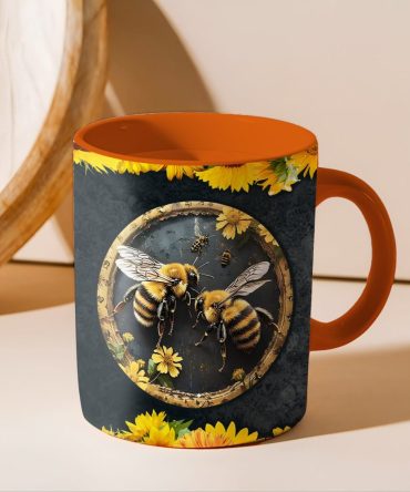 - High quality ceramic mug with two-tone rim, interior, & handle