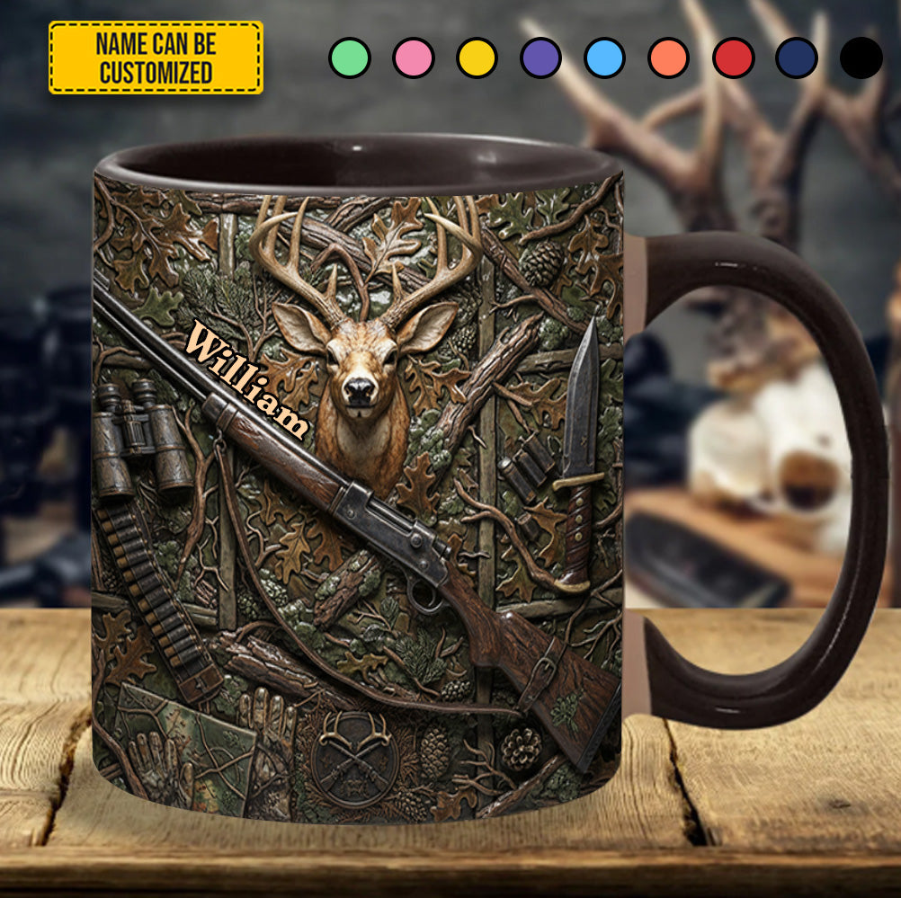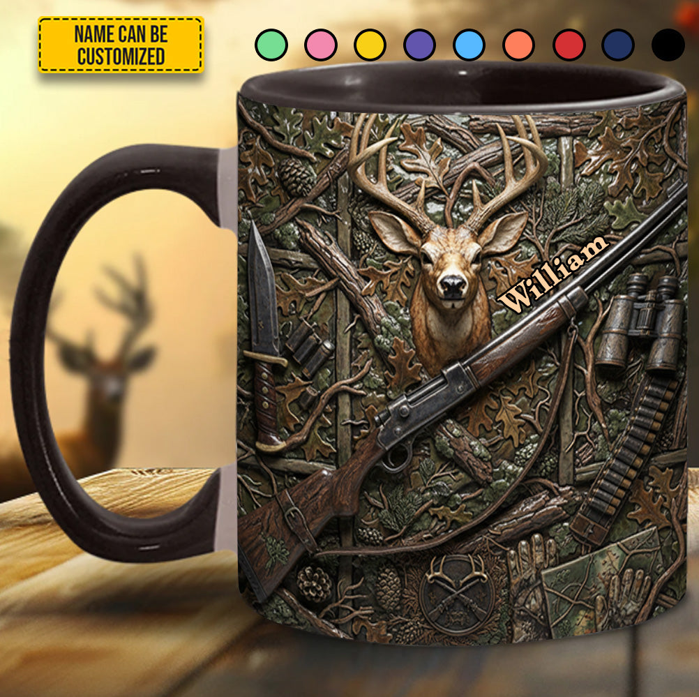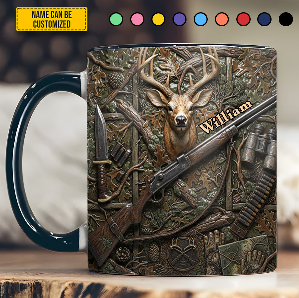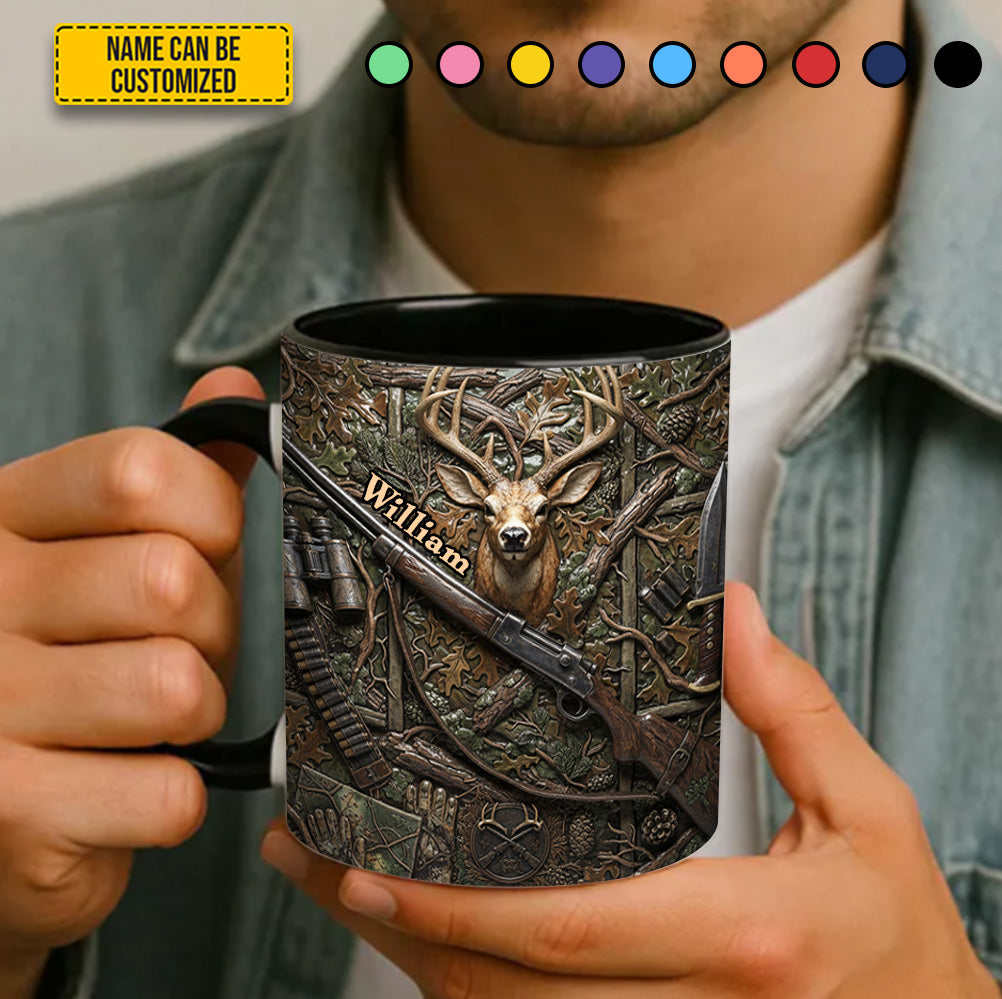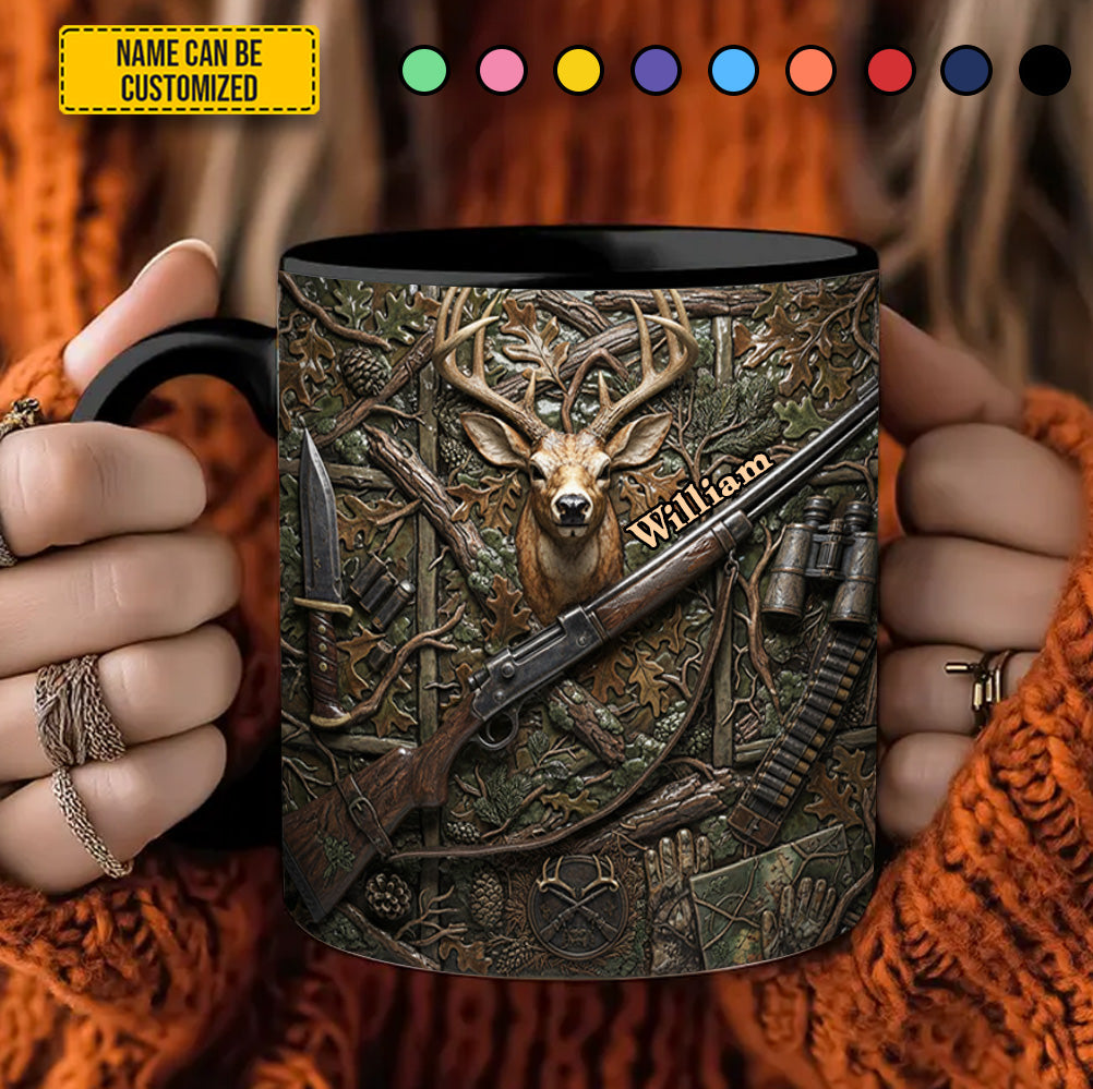 - High quality ceramic mug with two-tone rim, interior, & handle