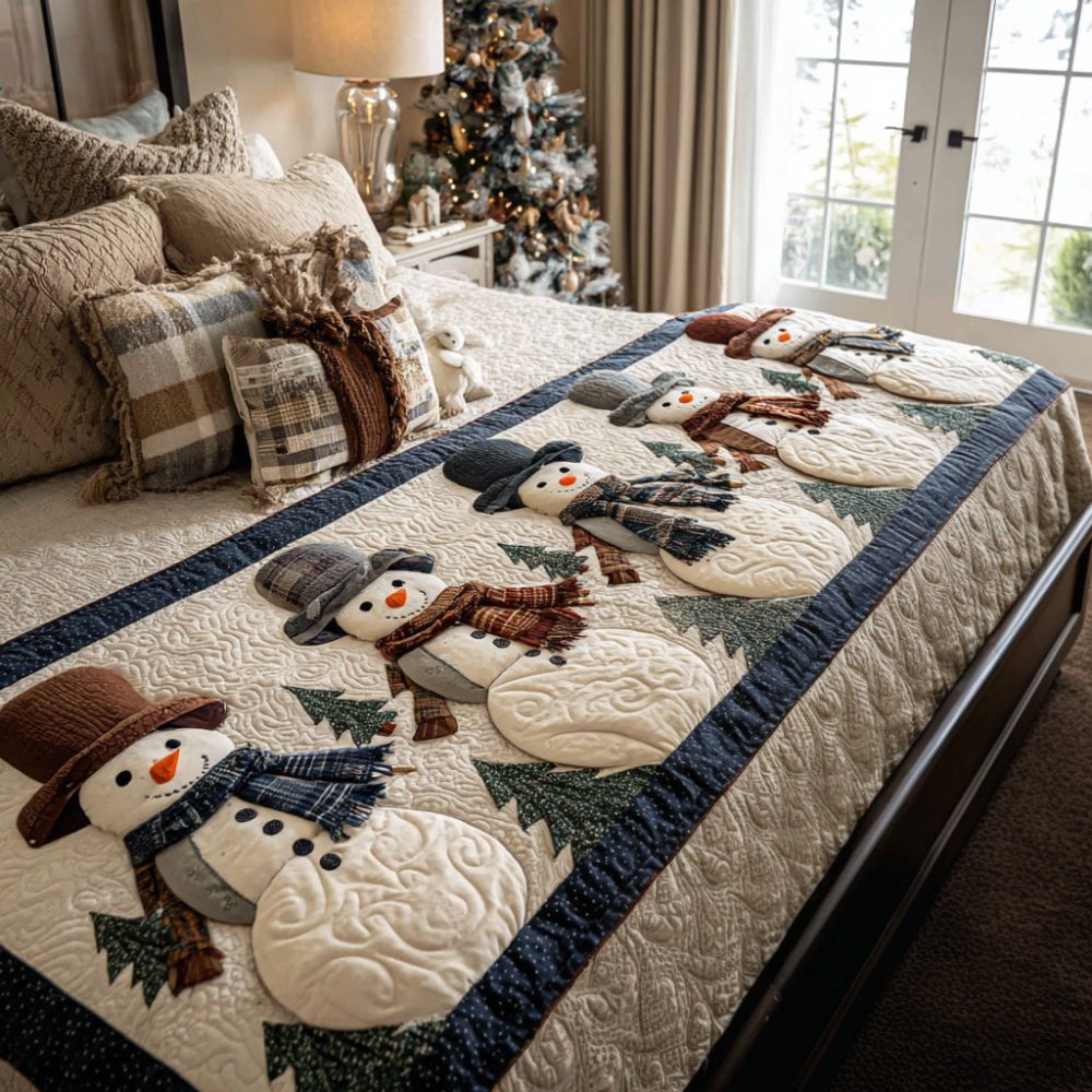 Icy Holiday Happiness Quilted Bed Runner — Cool Winter-Themed Bedding Accent With Snowy Motifs For Elegant Seasonal Styling