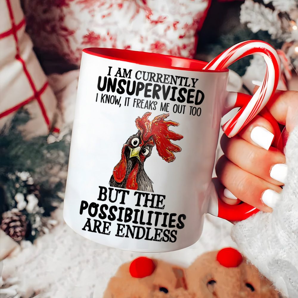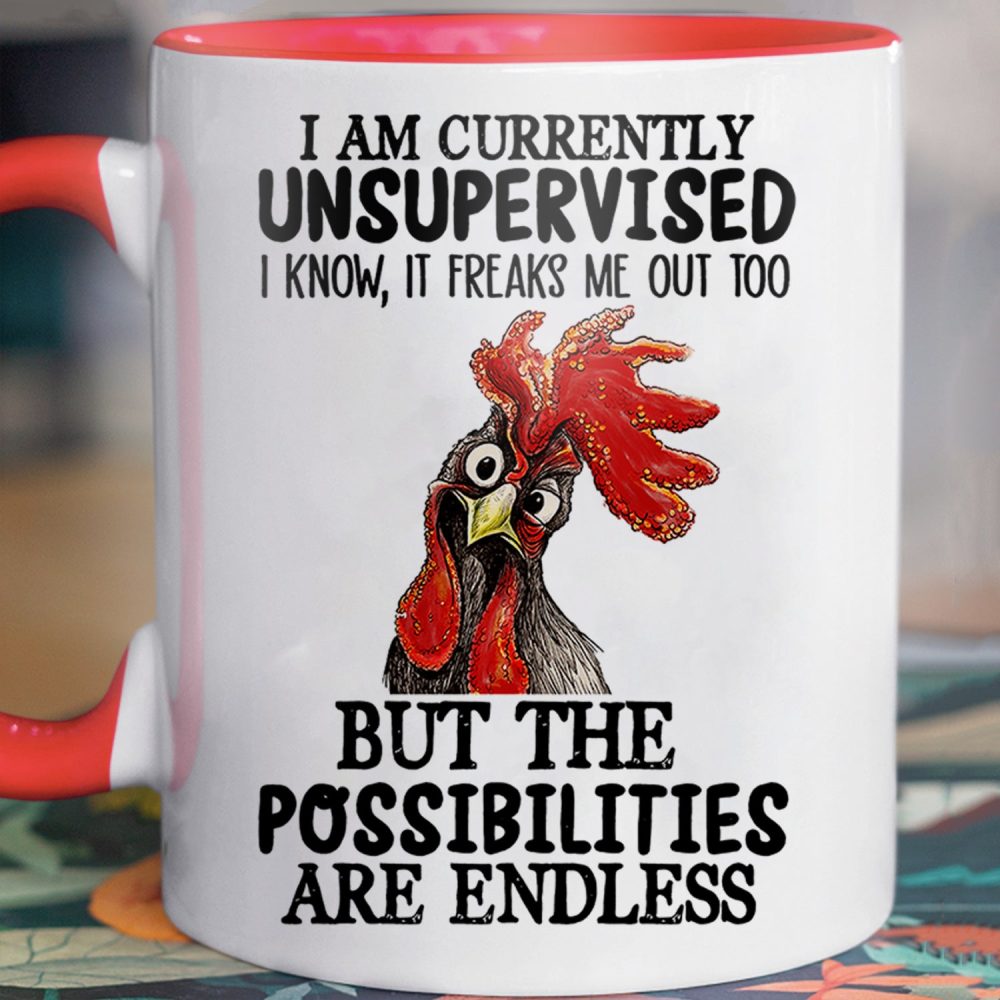 - High quality ceramic mug with two-tone rim, interior, & handle