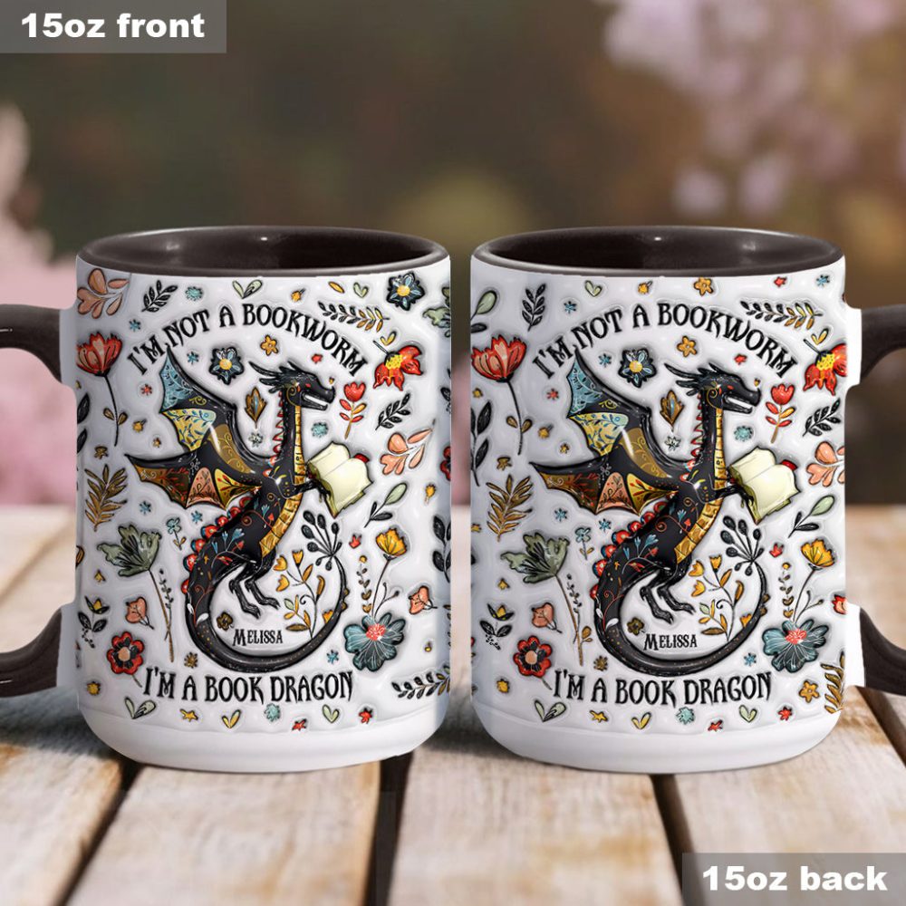 I’M Not A Book Worm I’M A Book Dragon – Personalized Book Accent Mug