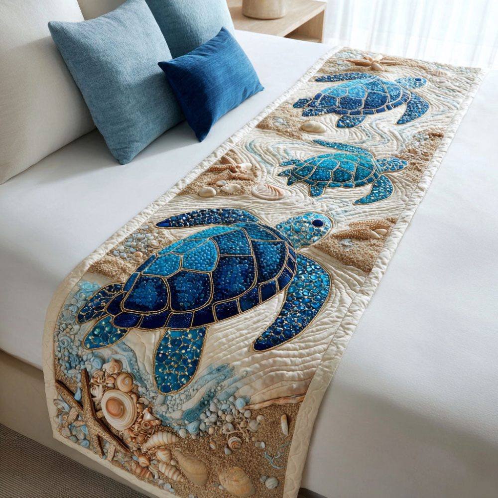 Island Crawler Quilted Bed Runner – Tropical Turtle Accent Runner For Coastal & Nautical Bedrooms, Soft Quilting, Durable & Easy Care