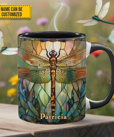 - High quality ceramic mug with two-tone rim, interior, & handle