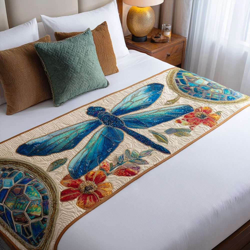 Jewel Of The Air Quilted Bed Runner — Elegant Nature-Inspired Bed Scarf For Queen & King, Subtle Luxe Texture, Reversible & Washable