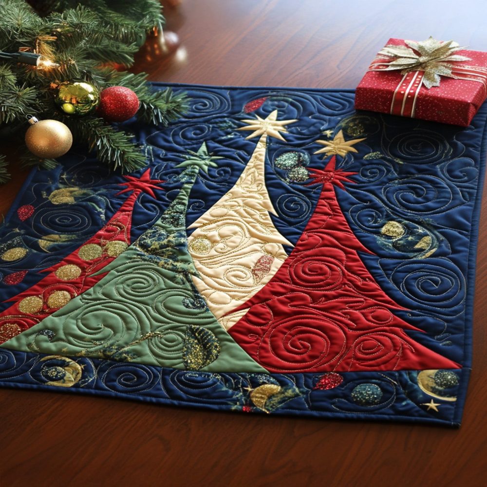 evergreen placemat, holiday placemat, quilted placemat, festive table decor, reversible placemat, machine washable, cotton padding, winter table accent