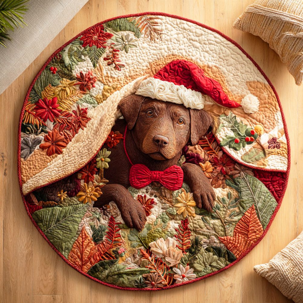Labrador Snowy Rest Quilted Round Mat