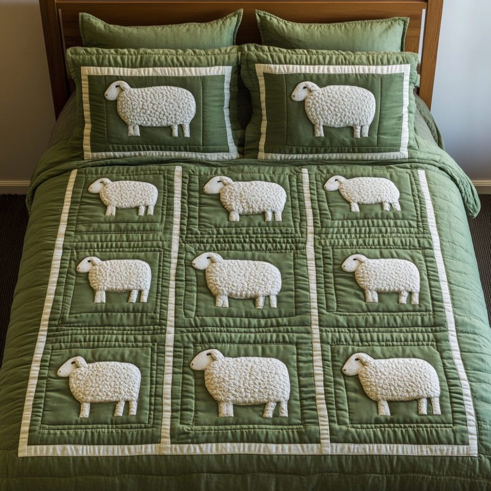 Lamb Meadow 3-Piece Quilted Bedding Set