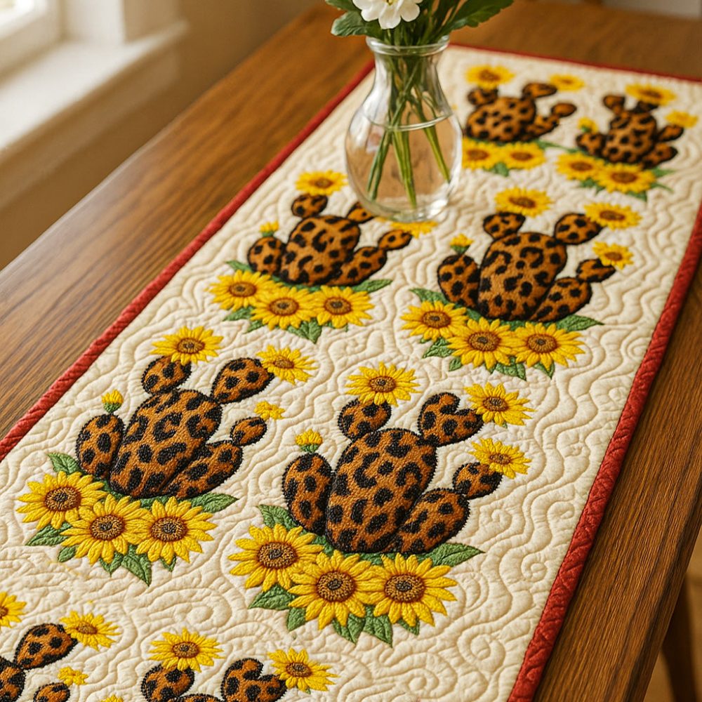 Leopard Cactus Quilted Table Runner