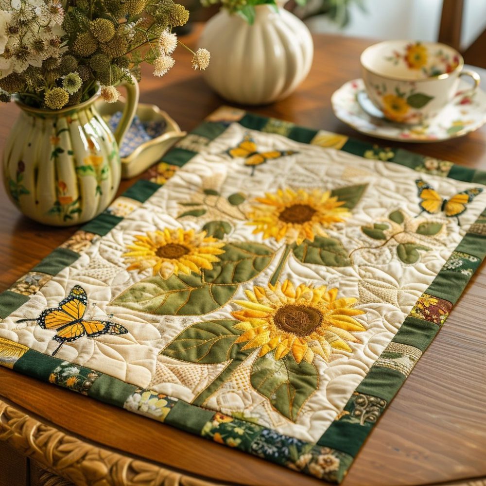 Light & Bright Sunflower Quilted Placemat — Sunny Garden Patchwork Table Mats For Spring/Summer Dining And Patio Entertaining
