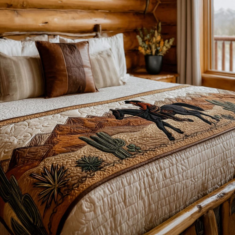 Lone Star Southwestern Quilted Bed Runner — Patriotic Texas-Inspired Chevron Accent, Durable Cotton For Rustic & Modern Bedrooms