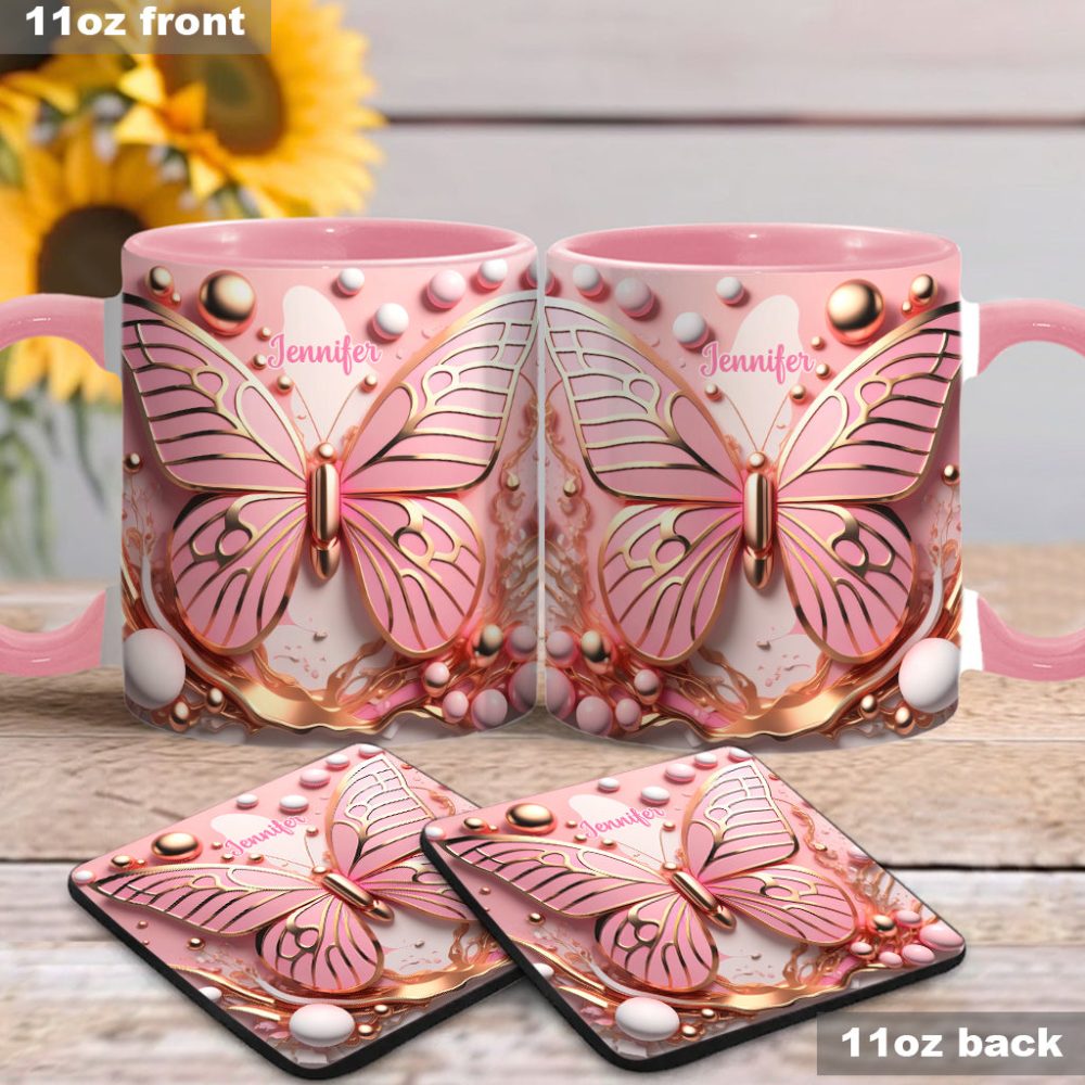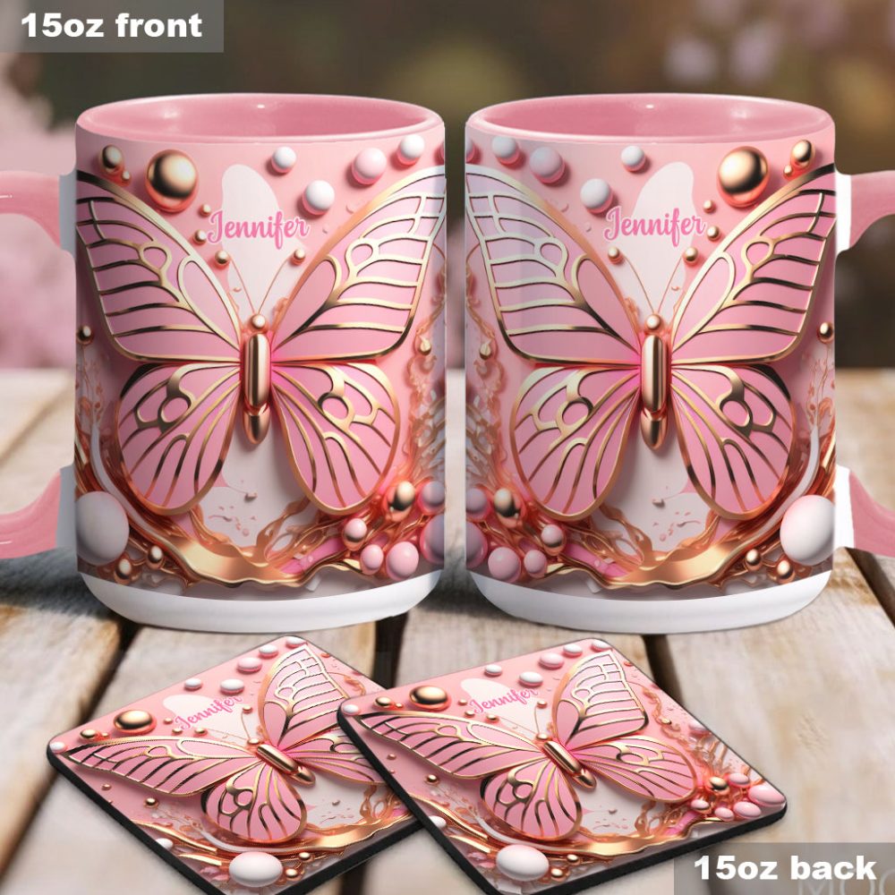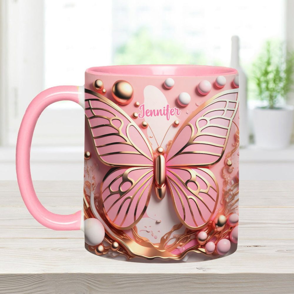 - High quality ceramic mug with two-tone rim, interior, & handle