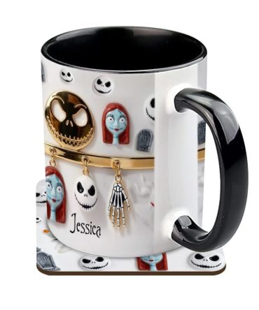 - High quality ceramic mug with two-tone rim, interior, & handle