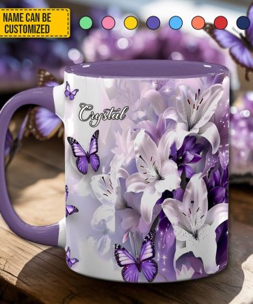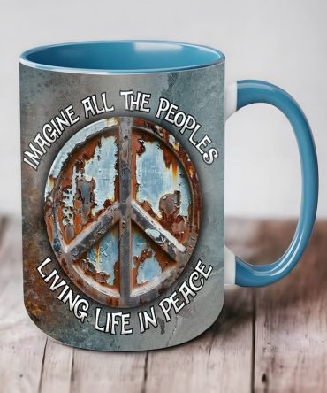 - High quality ceramic mug with two-tone rim, interior, & handle