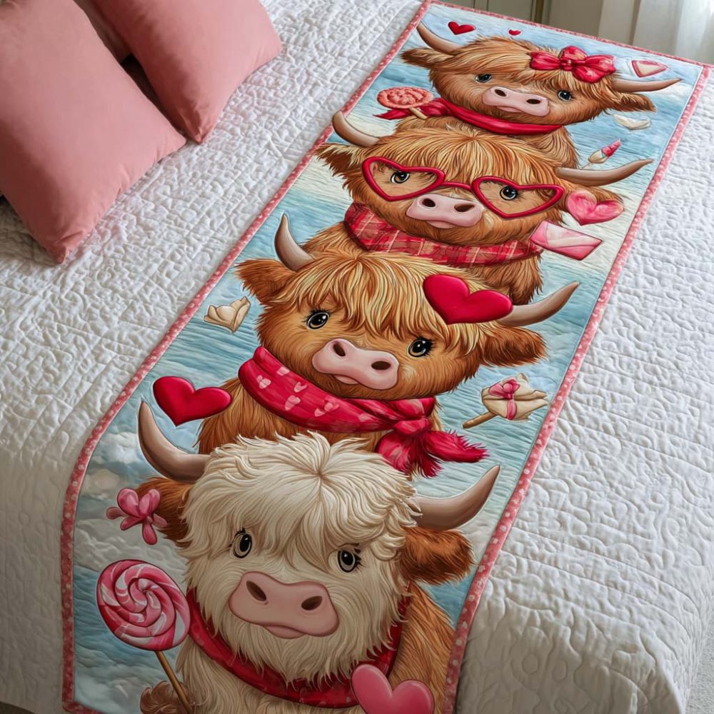 Love Moo Moments Quilted Bed Runner – Cute Cow-Themed Quilted Bed Scarf For Playful Bedroom Styling , Decorative Throw For Kids & Farmhouse Looks