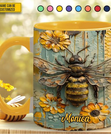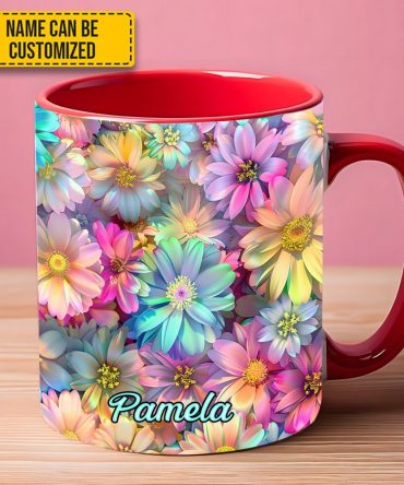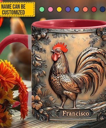 - High quality ceramic mug with two-tone rim, interior, & handle