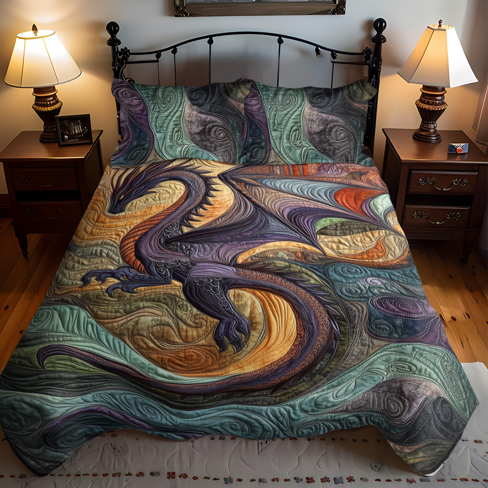 Lunar Serpent 3-Piece Quilted Bedding Set