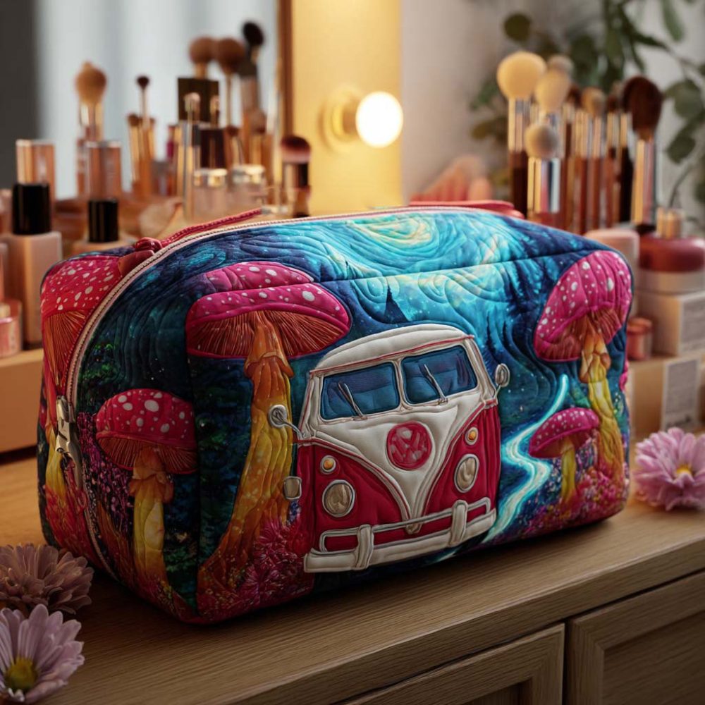 Magic Mushroom Ride Quilted Makeup Bag